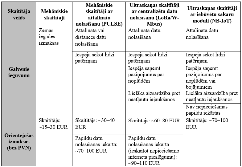 • par vienota skaitītāju veida uzstādīšanu visos dzīvokļos (ar attālināto datu nolasīšanu vai bez tās);